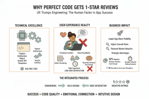 Even the most reliable, bug-free, and beautifully developed mobile application may still find itself with a long list of 1-star rated reviews. The discrepancy between technical achievements and user experience is not an exceptional case anymore. The current user does not consider code quality but the emotional comfort, visual readability, value delivery, and experience that a person is offered when using the app for the first time. In a rapidly changing market, a product with perfect code can fail simply because it does not align with users’ mindsets, behaviors, or perceptions of design symbols.